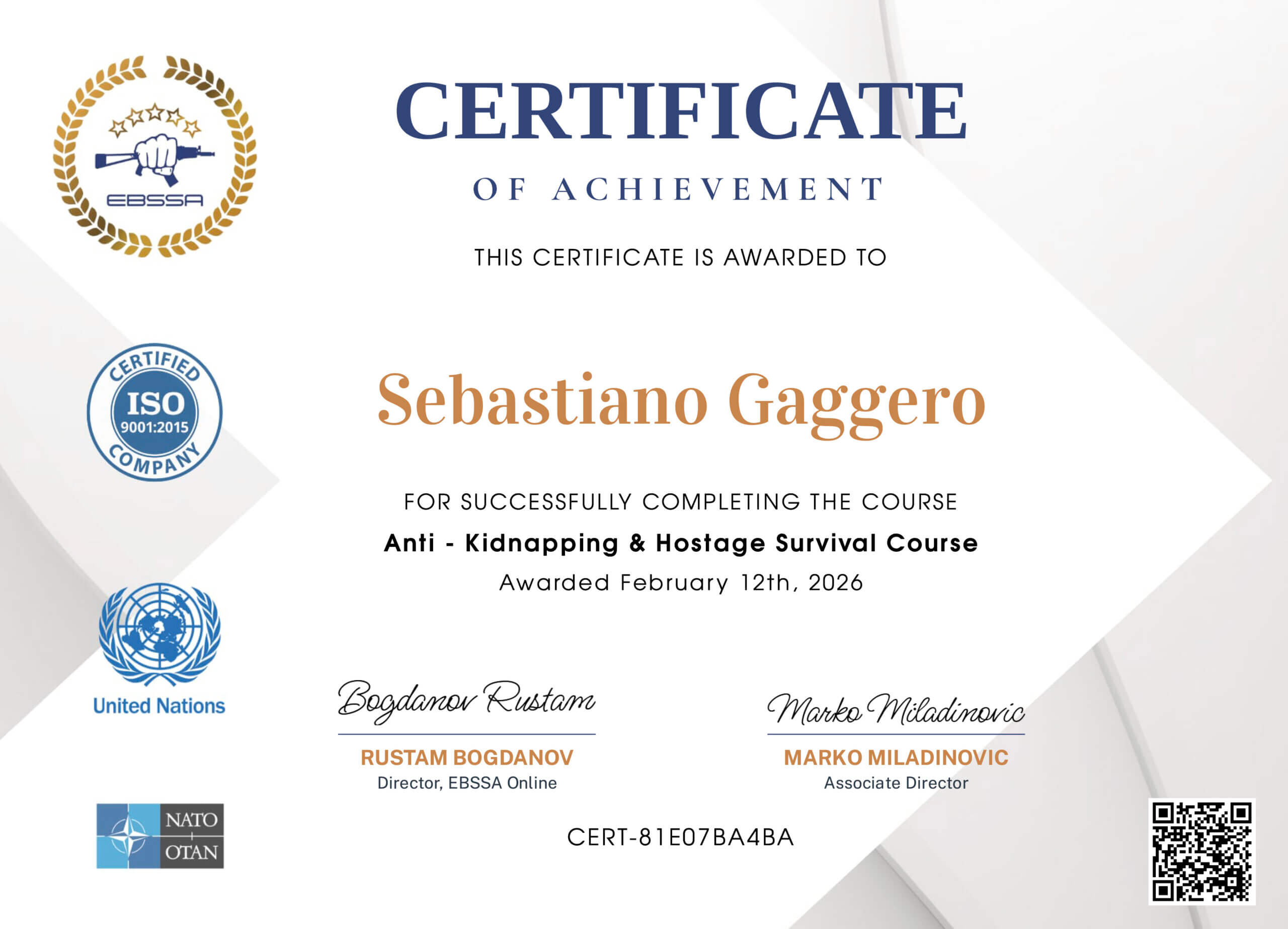 EBSSA Anti – Kidnapping & Hostage Survival Course.